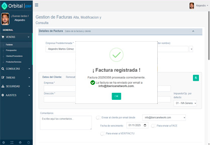 Olvídate de procesos tediosos. Con Orbital ERP, puedes dar de alta clientes y productos sobre la marcha, mientras creas la factura. El stock se descuenta automáticamente y se recupera si anulas el documento. Gestiona facturas rectificativas, remesas, firma con tu certificado digital y envía todo por email sin salir de la aplicación.