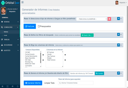 Tú eliges los filtros, tú decides qué columnas mostrar y tú estableces el orden. Crea el informe perfecto para cada necesidad, desde un simple listado de ventas hasta un complejo análisis para la declaración de IVA.